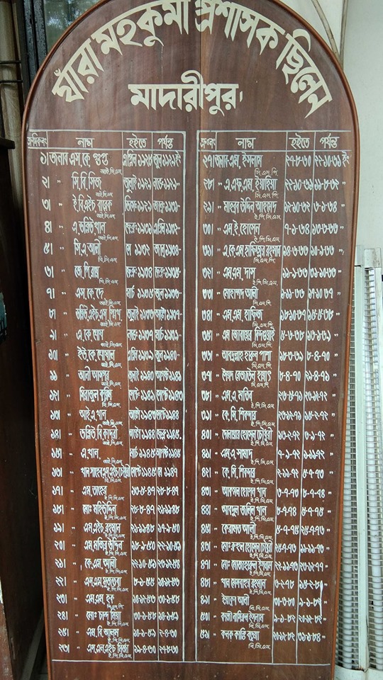 | | জনাব ই.বি.এইচ বারেক (আই.সি.এস) | ডিসেম্বর ১৯২৯ | জানুয়ারি ১৯৩১ |